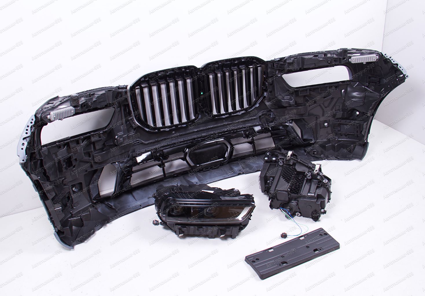 Комплект рестайлинга на BMW X7 (G 07) изготовлен из высококачественных материалов и устанавливается в штатные места без переделок и доработок. В комплект обвеса входит: передний бампер в сборе, решетка радиатора, передние фары, задний бампер в сборе, задние фонари, комплект крепежа.