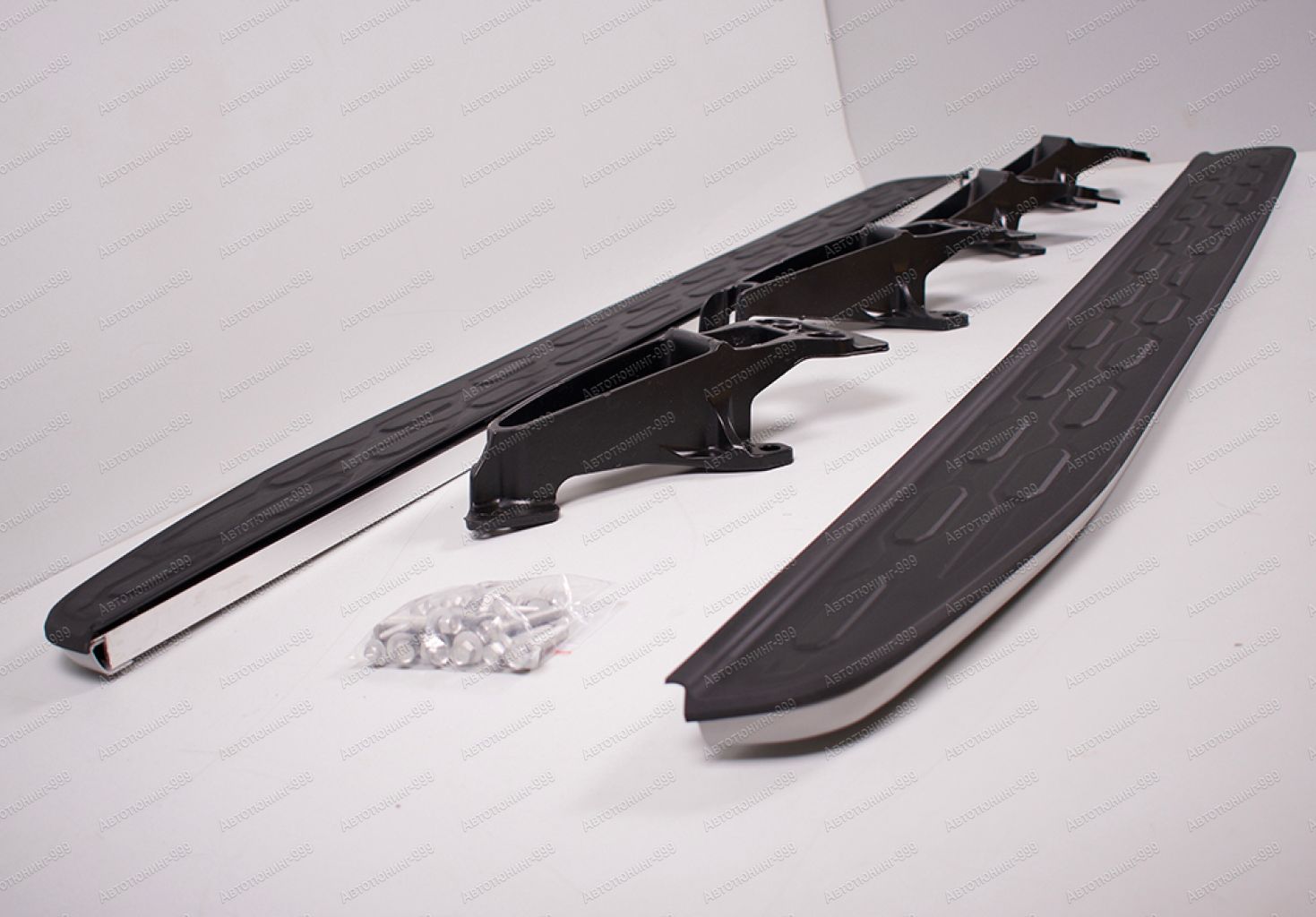 Пороги для внедорожников Land Rover Discovery 5 c 2017 года выпуска по настоящее время. Поверхность порога выполнена из противоскользящего пластика и торцевых накладок из нержавеющей стали, каркас порога и кронштейны стальные. Пороги используются для удобной посадки-высадки, защищают штатные пороги внедорожника от грязи. Являются неотъемлемым аксессуаром для тюнинга автомобиля, придадут Вашему внедорожнику индивидуальность и элегантный внешний вид.