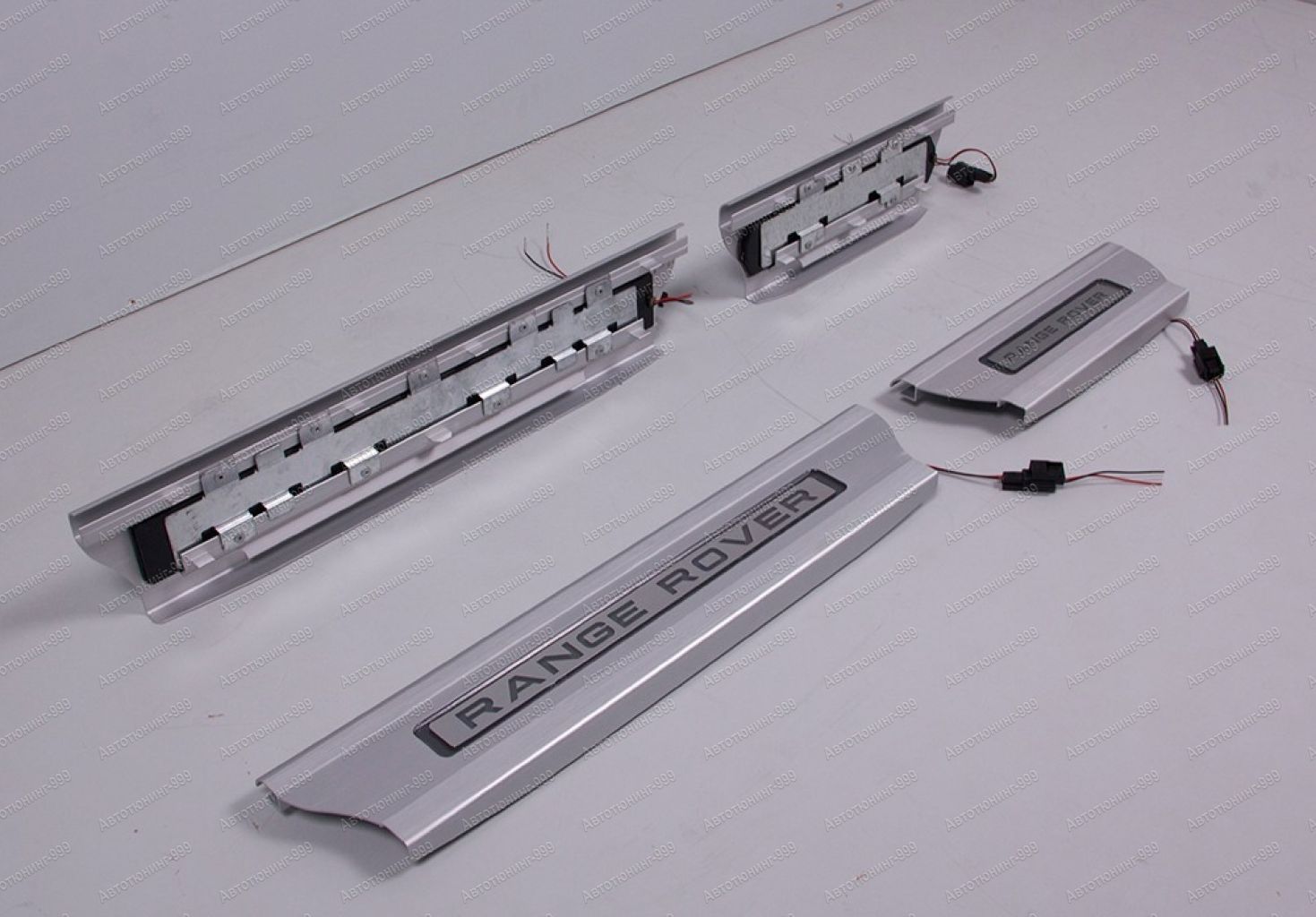 Накладки на пороги с подсветкой Range Rover для Range Rover Sport изготовлены из высококачественных материалов и устанавливаются в штатные места без переделок и доработок. В комплект входит: 4 накладки и комплект проводки.