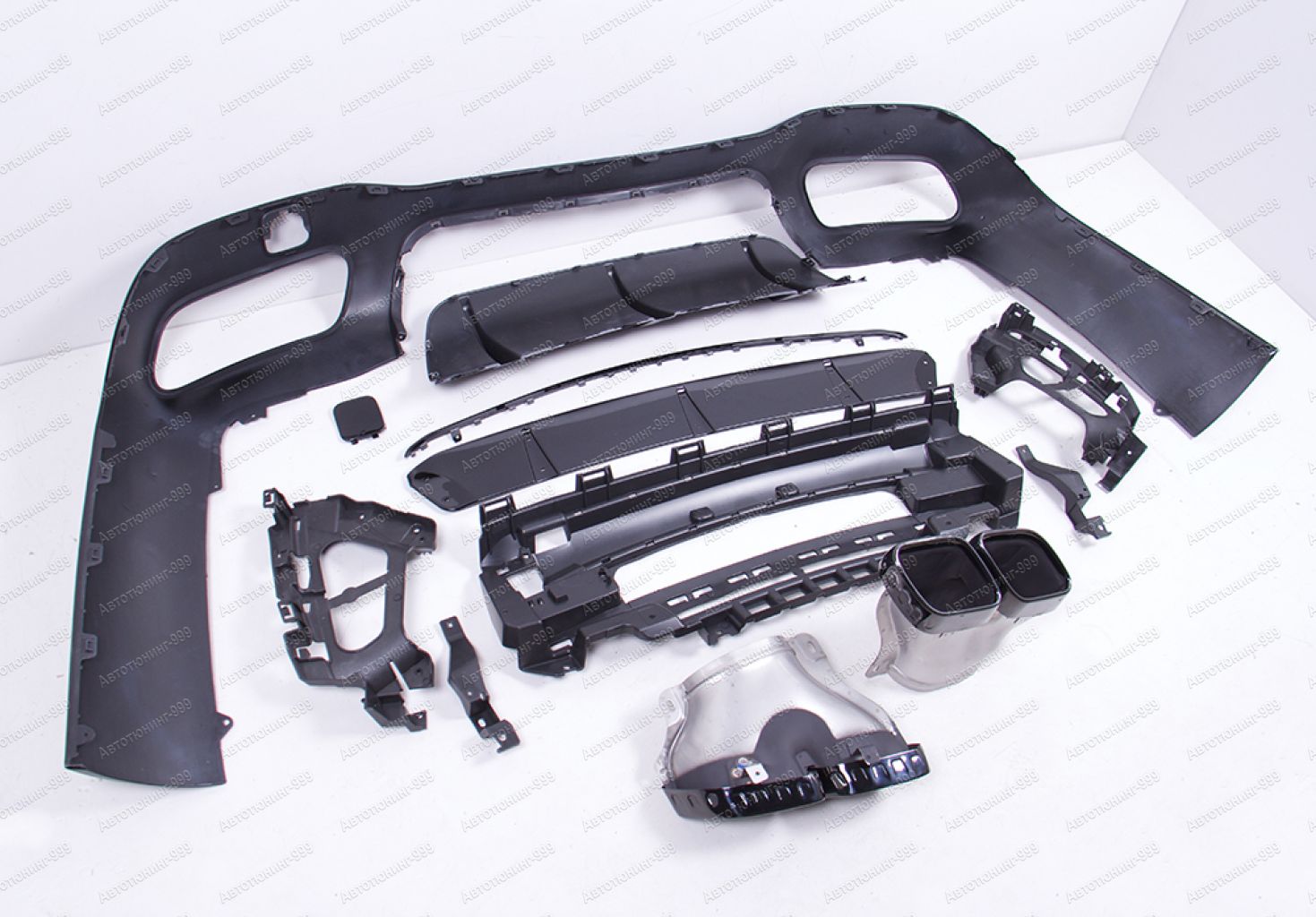 Диффузор 63 AMG Mercedes AMG GT C190 рестайлинг с черными насадками. Диффузор изготовлен из высококачественных материалов и устанавливается в штатные места без переделок и доработок. В комплект обвеса входит: диффузор заднего бампера, черные насадки глушителей, монтажный комплект.