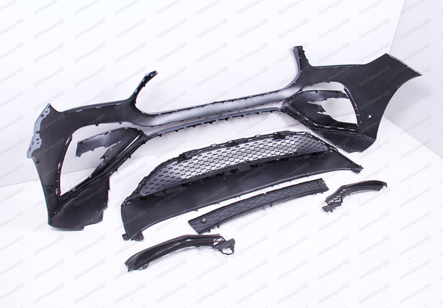 Передний бампер 53 AMG на Mercedes GLE V 167 изготовлен из высококачественных материалов и устанавливается в штатные места без переделок и доработок. В комплект входит: передний бампер в сборе с черной решеткой и комплект крепежа. Бампер под окрас.