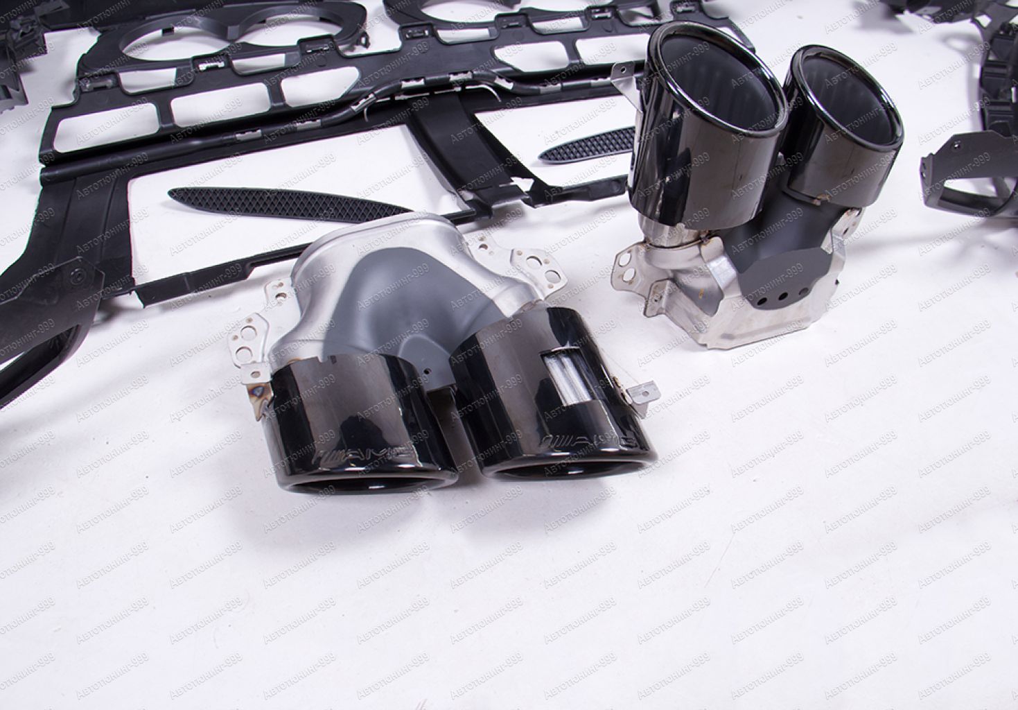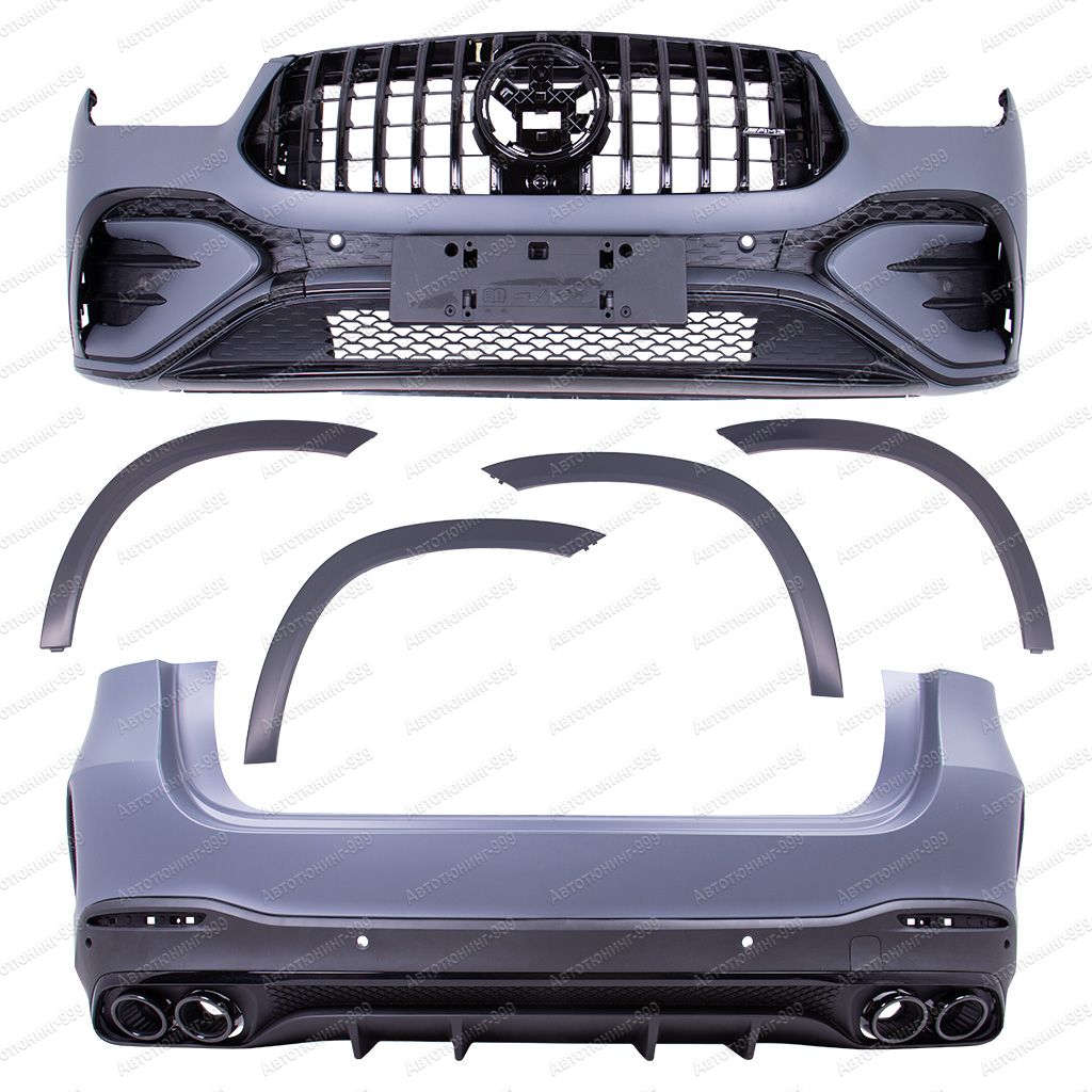 Обвес 53 AMG черный комплект для Mercedes GLE V167 изготовлен из высококачественных материалов. В комплект входит: передний бампер в сборе с решеткой радиатора, задний бампер в сборе и хромированными насадками, комплект крепежа.